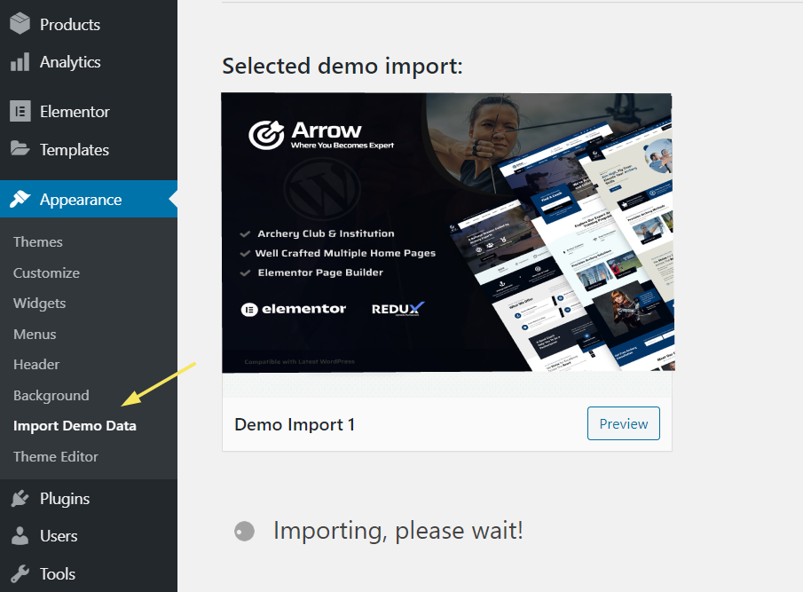 When you are logged in your WordPress Goto Appearance > Themes > Install Themes > Upload and select the theme zip file Arrow.zip, You can find this inside the Arrow Package that you downloaded from Template Monster.