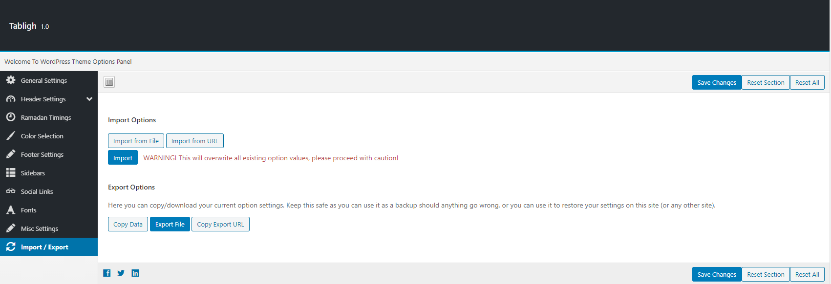 You can import your default settings and export them as well from this section. Import default settings from import settings file given in the sample content directory of the full package you downloaded from template monster for quick start.