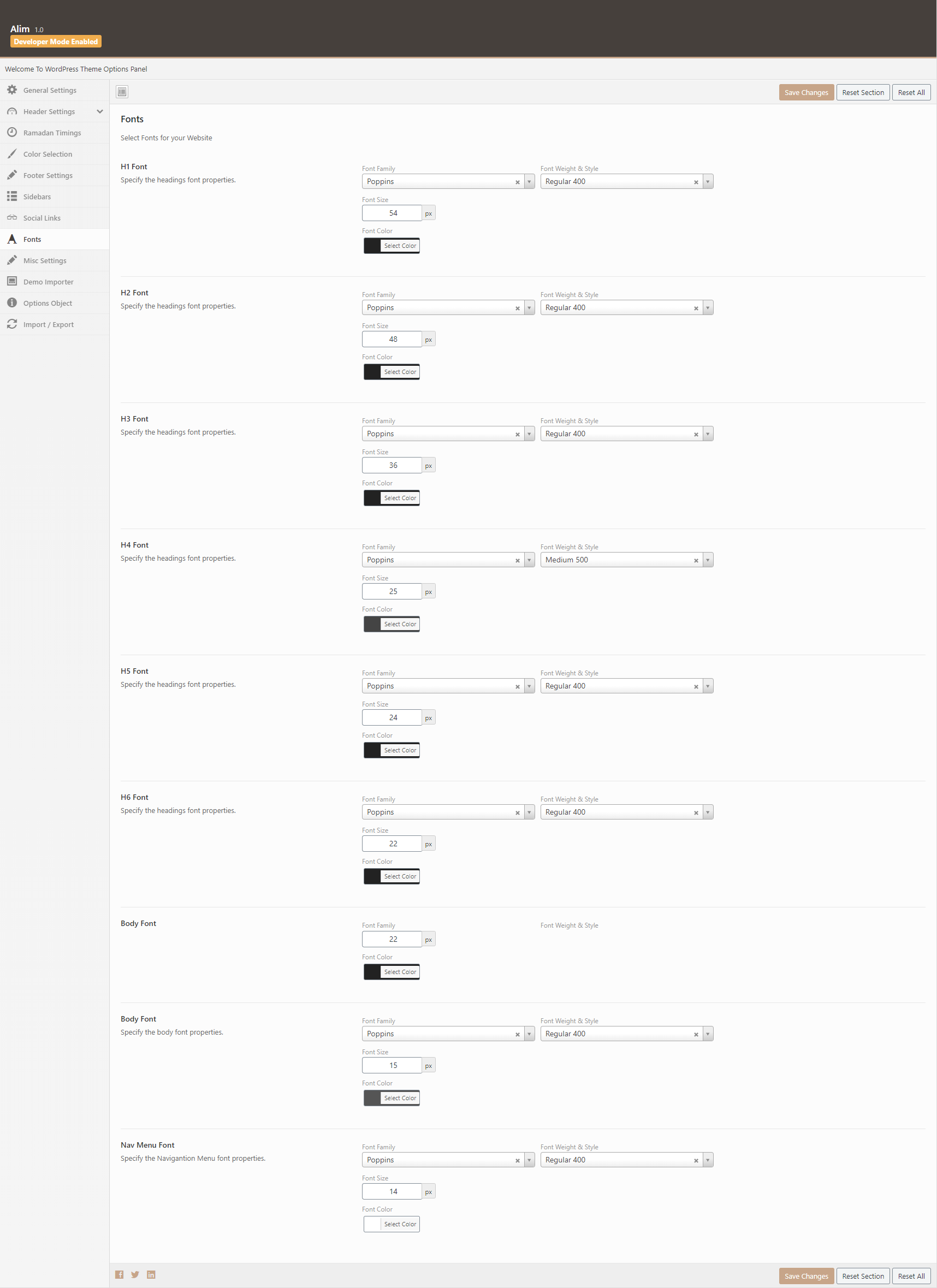 You can manage your typography of the site from here, controls for headings h1 to h6 here, along with paragraphy and menu font family, font size and font weight.