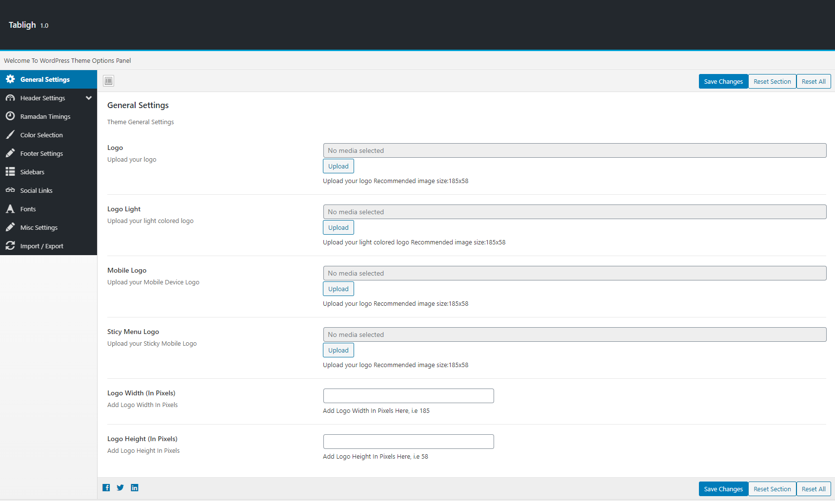 You can set your header options from here, including phone number, email address, social icons on/off. In header section you can change image for inner banner/secondary header. Enable disable breadcrumbs from this section too.