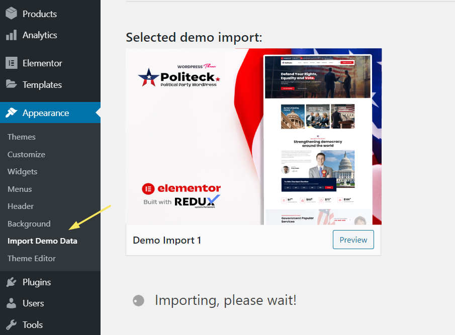 When you are logged in your WordPress Goto Appearance > Themes > Install Themes > Upload and select the theme zip file Politeck.zip, You can find this inside the Politeck Package that you downloaded from Template Monster.